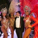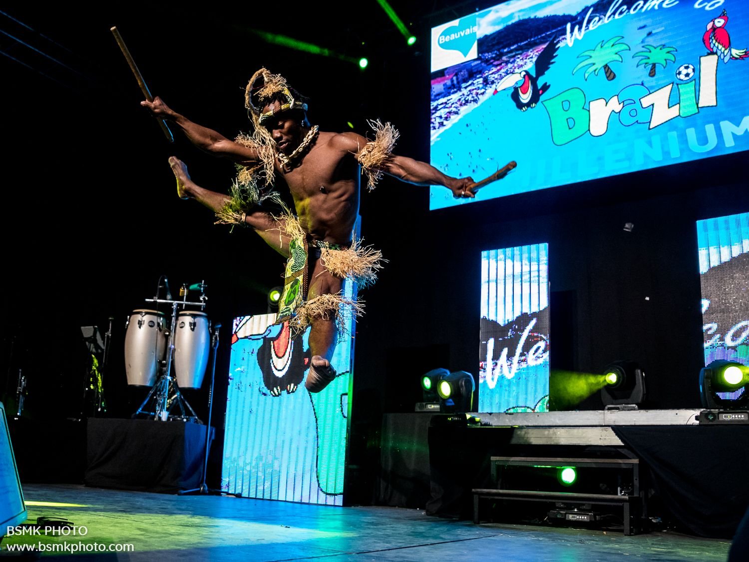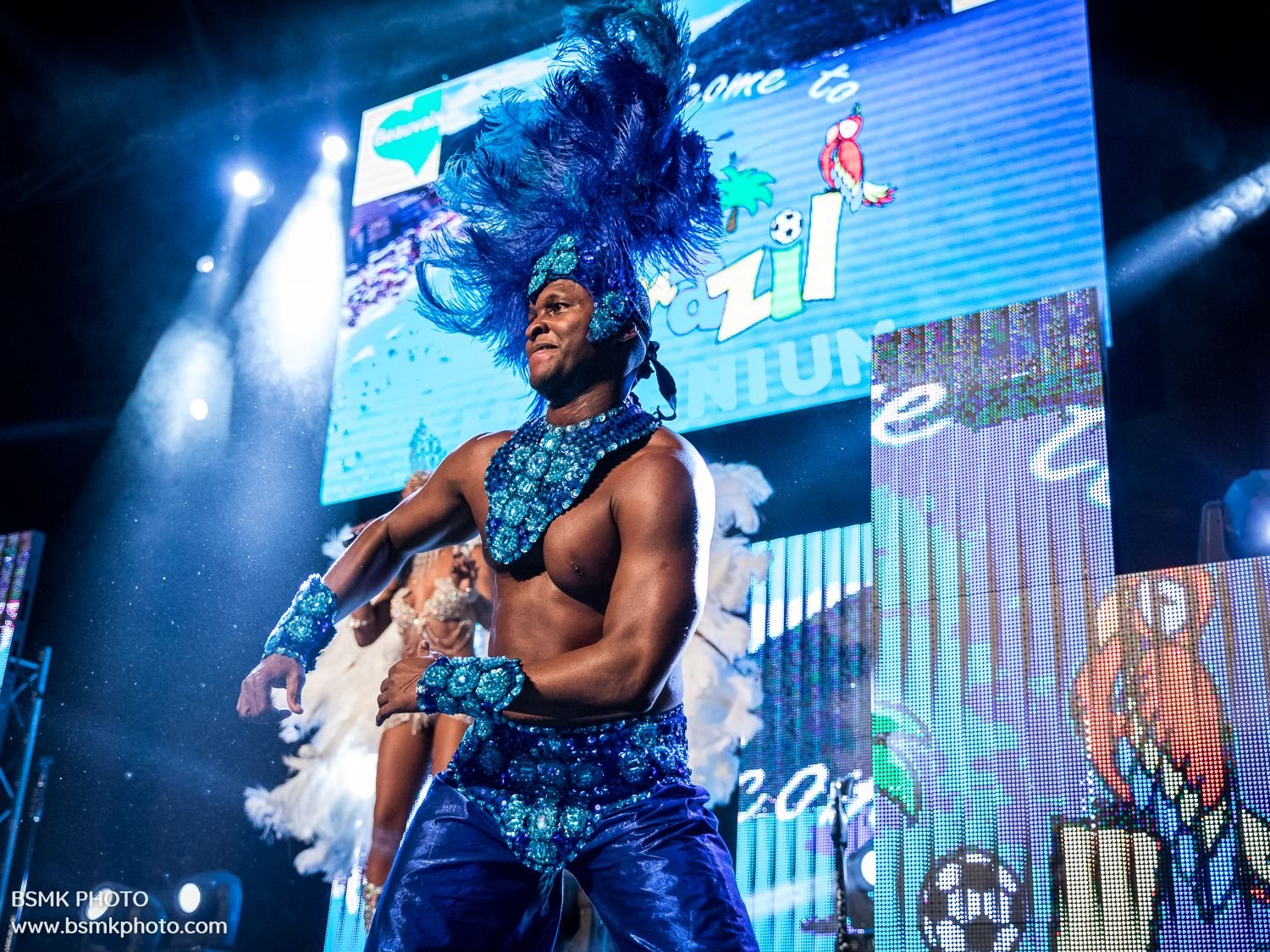 Guidés par la voix mélodieuse de notre ravissante meneuse de revue, plongez au cœur du Brésil à la rencontre de la beauté métisse de ses artistes. Laissez-vous entrainer par les rythmes des danses énergiques de Bahia, par le folklore afro brésilien et les performances acrobatiques de la capoeira. Partez rejoindre le magnifique Carnaval de Rio, festival de couleurs, de plumes et de paillettes et venez vibrer sur les rythmes de la samba avec nos danseuses brésiliennes et tous nos artistes afin que ce moment demeure une fête mémorable.